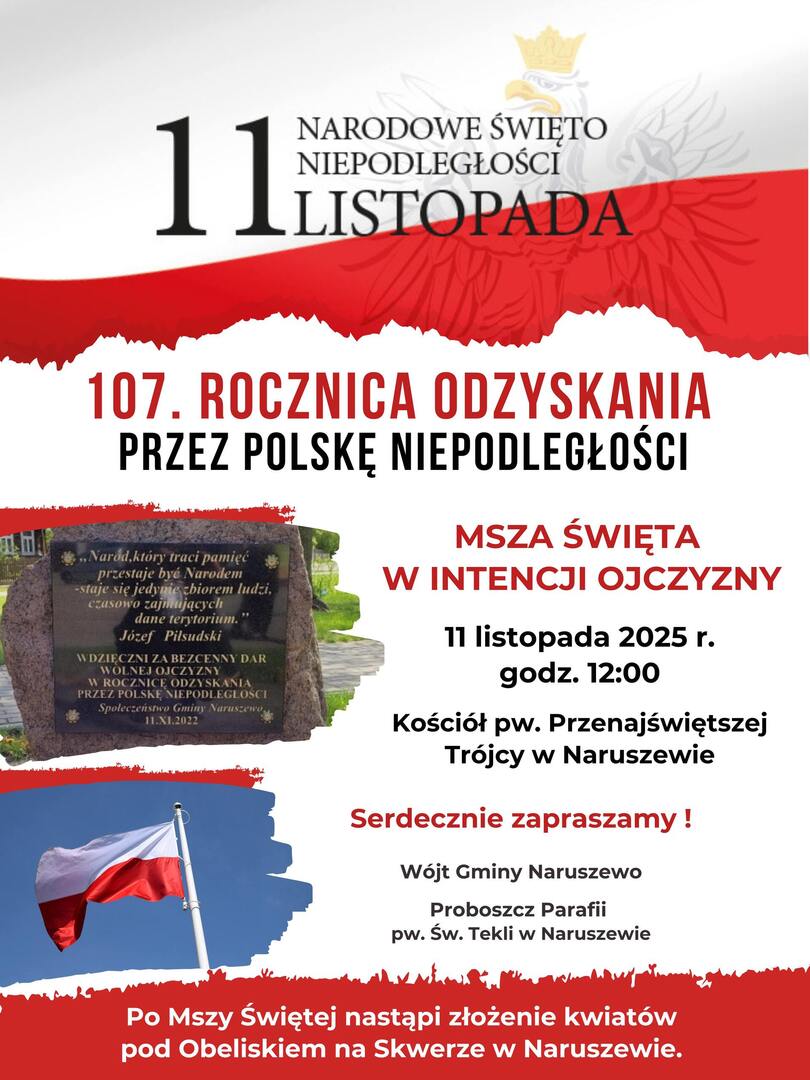 Msza Święta w intencji Ojczyzny w 107. Rocznicę Odzyskania przez Polskę Niepodległości